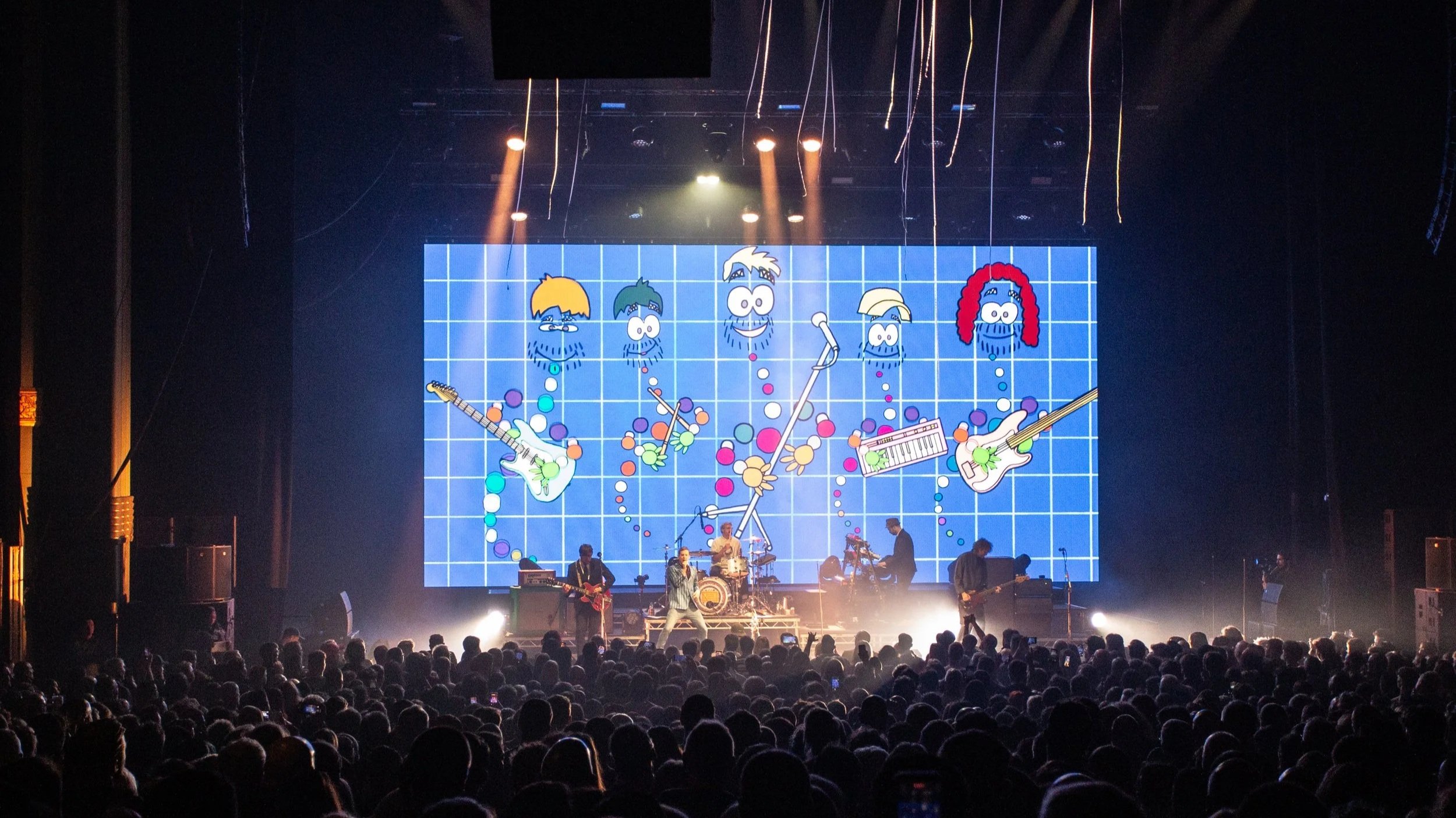 The sold-out crowd gave Mancunian four-piece Corella a chance to showcase their nostalgic, high-octane indie singles released over the years, starting with the ambience-building Do You Want It?, which the crowd certainly did. Corella, seizing the crowd’s immediate enthusiasm, performed a mix of unreleased tracks, as well as a smattering of singles from their 2024 album Once Upon a Weekend. It is clear why Kaiser Chiefs chose them as the prelude for their performance, with Corella having captured guitar-led, indie sentiment in a bottle, appealing to twenty-somethings who remember the days of Swim Deep and Circa Waves. The support ended their setlist with Barcelona Girl, one of their more popular tracks, paving the way for the Leeds boys to commence their set.