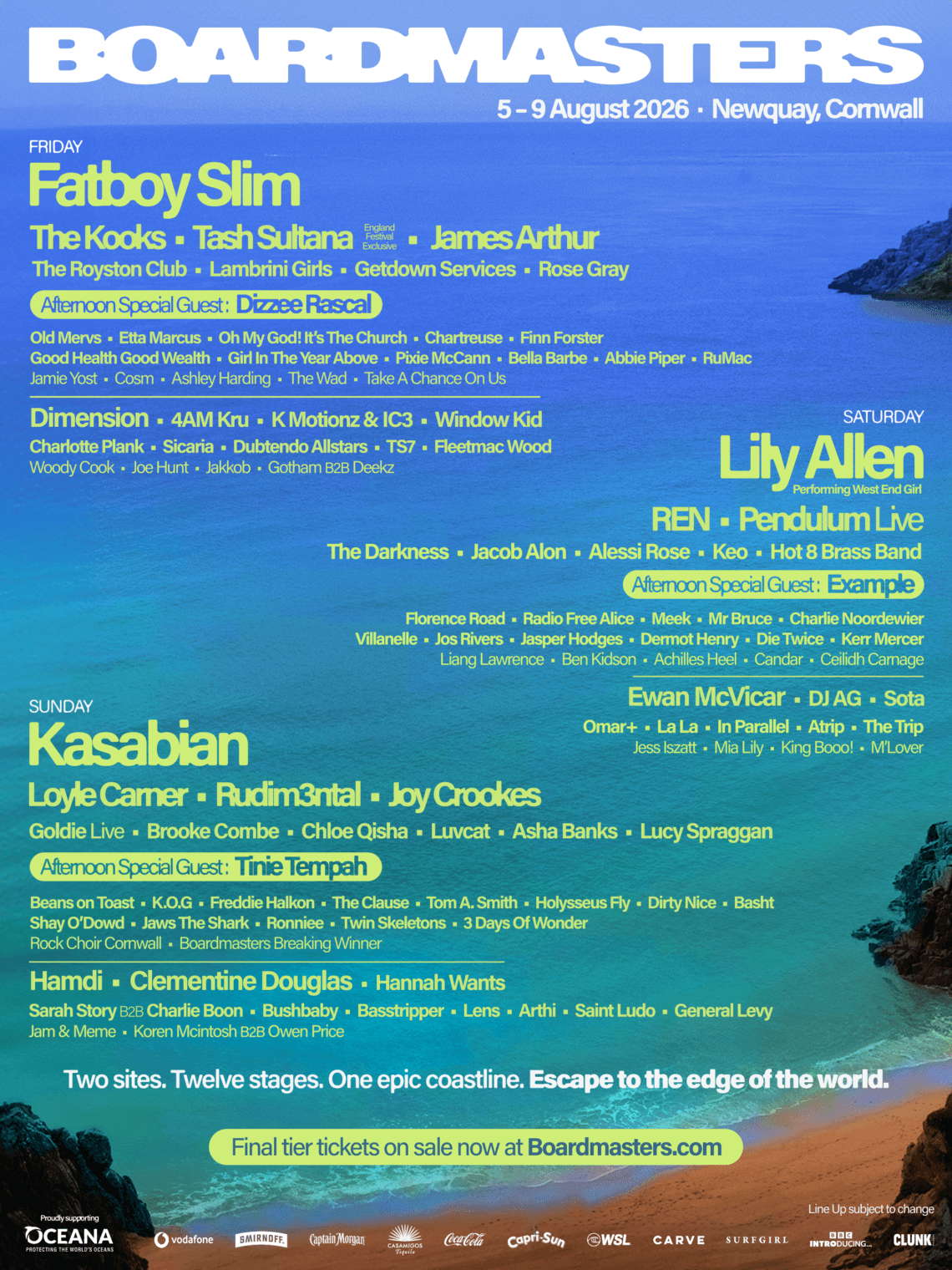 Boardmasters returns to Newquay this August for five days of music, surf and coastal culture, as it continues to blur the lines between mainstream and underground, live and electronic, and heritage and future.
